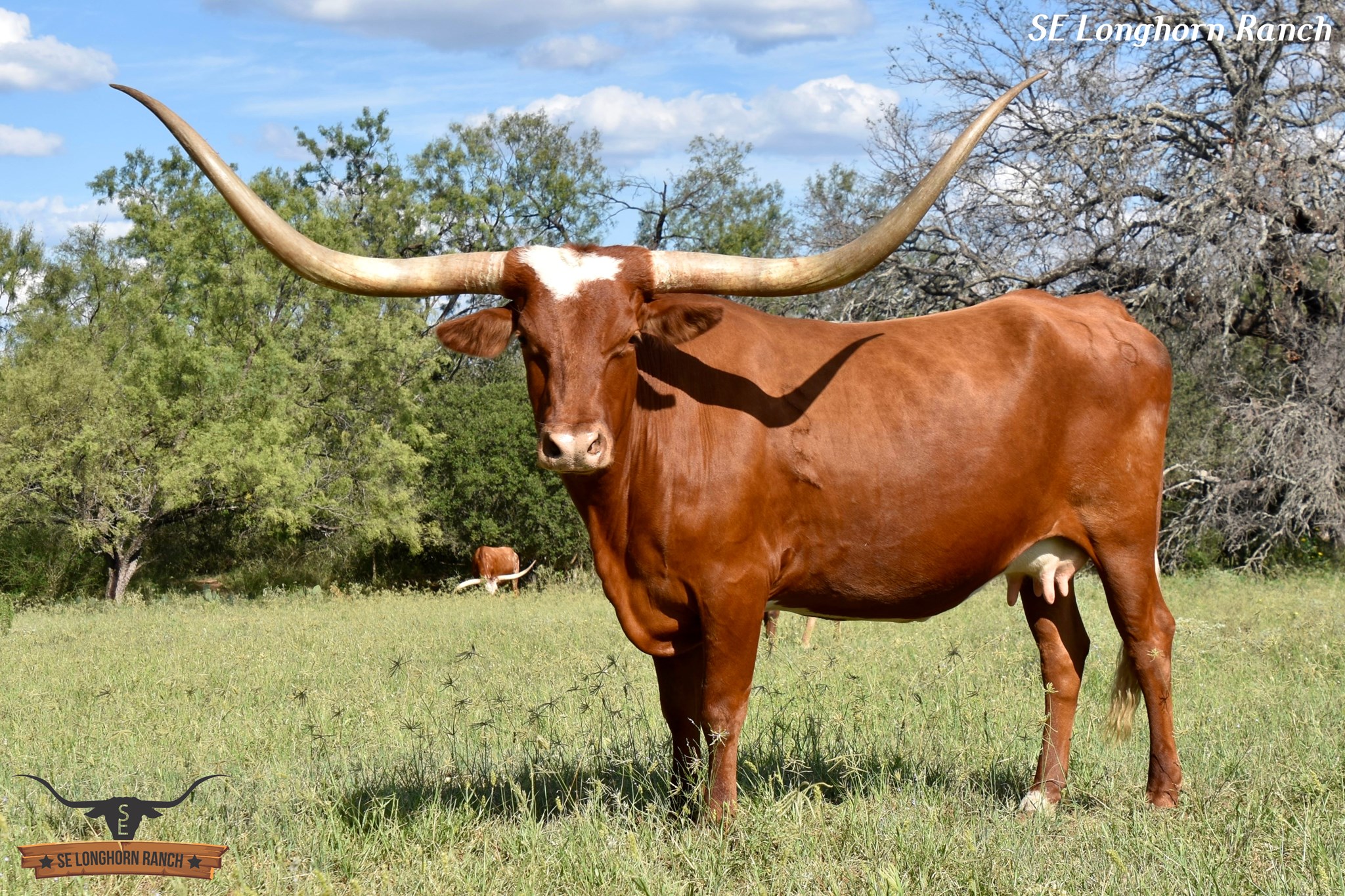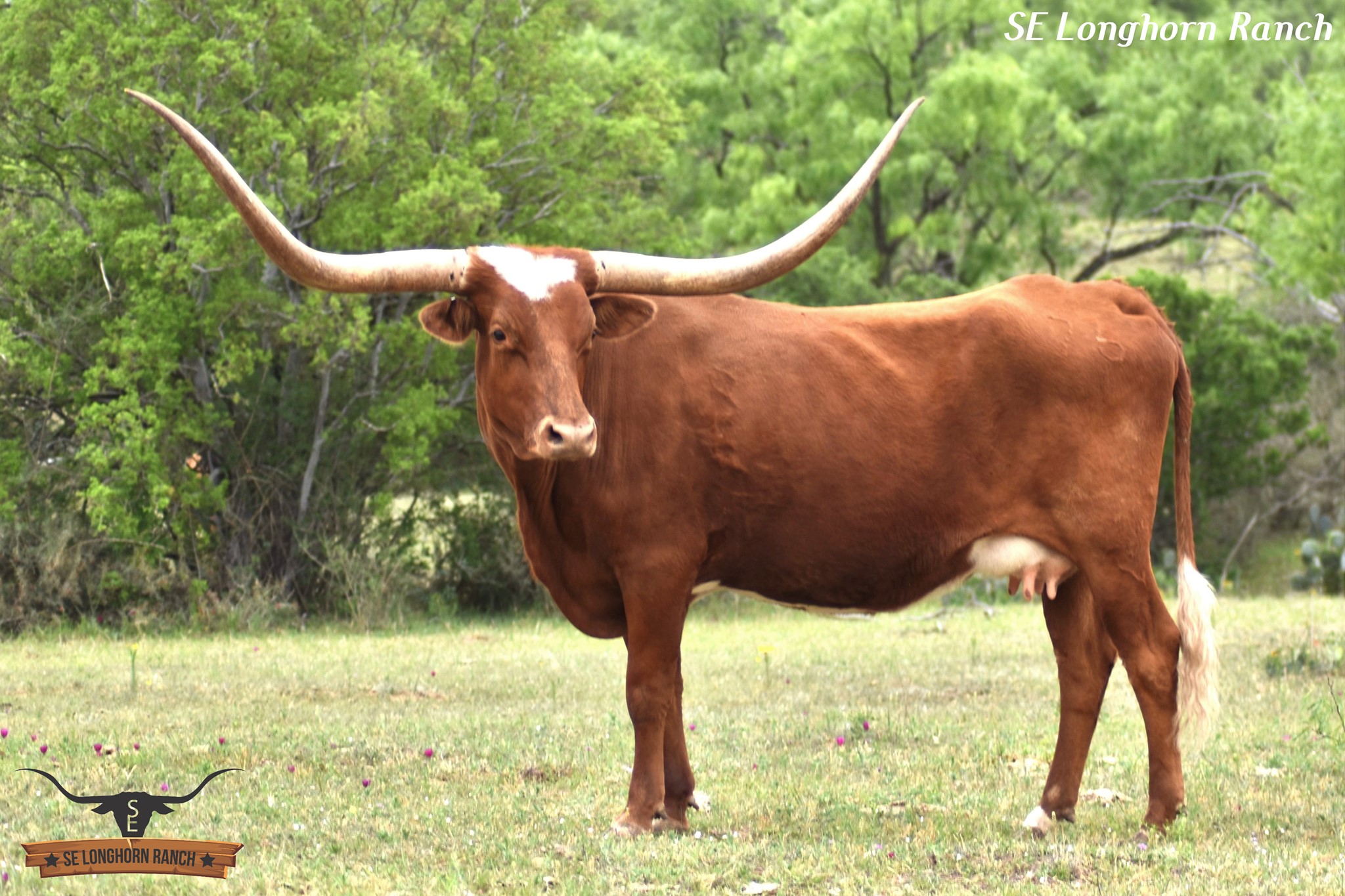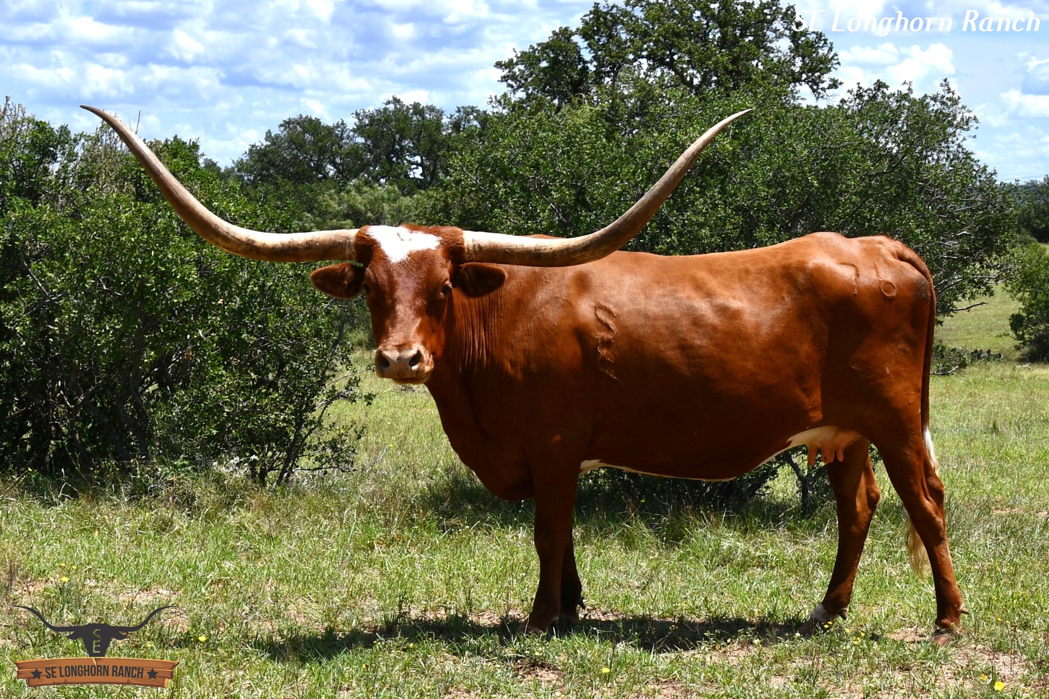 This ICON OF RM daughter is robust in every way. She was born just a few days after our daughter's birthday and was named by her. Just look at her Dam and the LOADED PEDIGREE on top and bottom. Her Grand Dam is almost 96"TTT and a half sister by sire to 3S DANICA'S Dam at over 100"TTT. Tavia is a gentle soul with large body, best disposition, color, and a beautiful horn set. We love her so much.