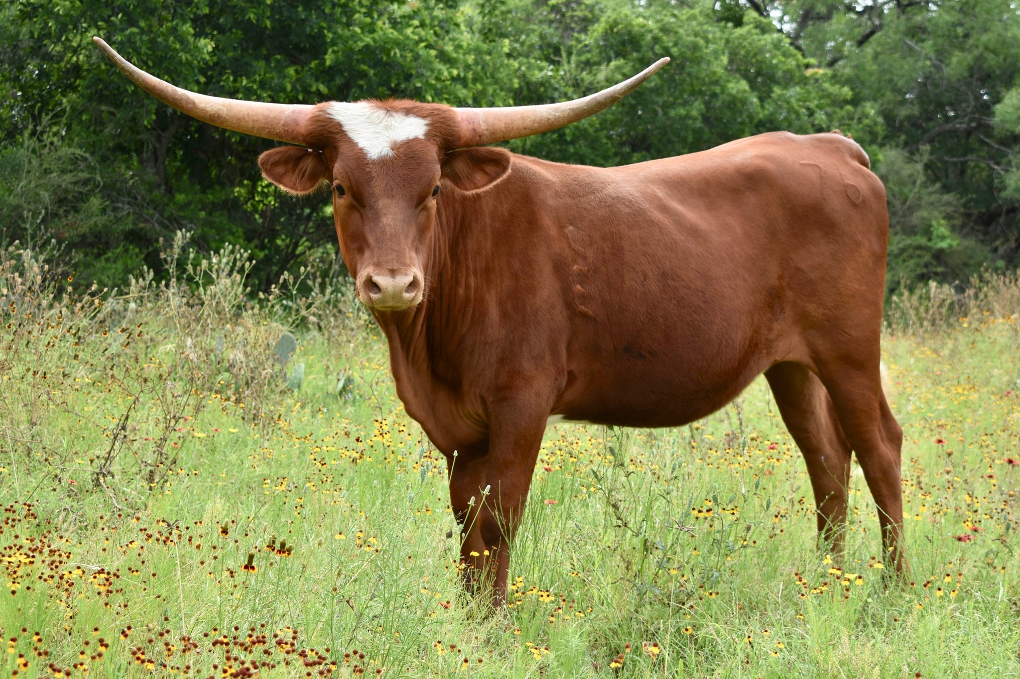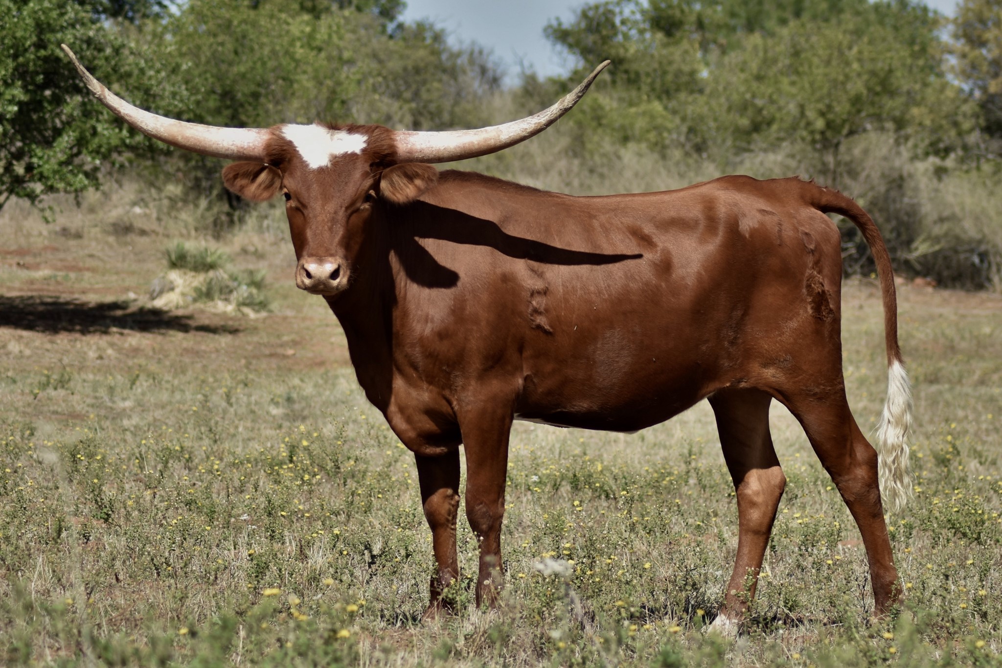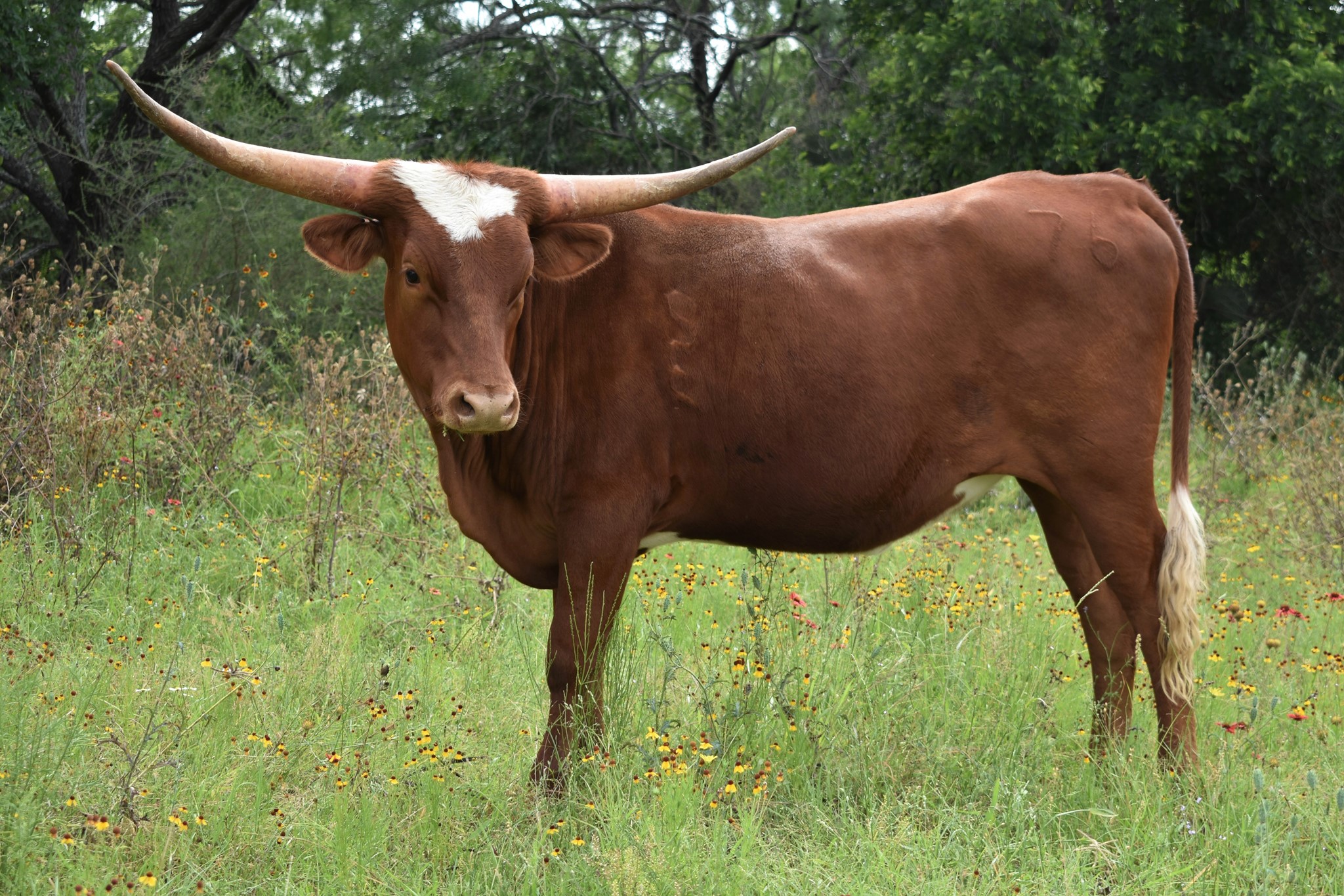 This ICON OF RM daughter is robust in every way. She was born just a few days after our daughter's birthday and was named by her. Just look at her Dam and the LOADED PEDIGREE on top and bottom. Her Grand Dam is almost 96"TTT and a half sister by sire to 3S DANICA'S Dam at over 100"TTT. Tavia is a gentle soul with large body, best disposition, color, and a beautiful horn set. We love her so much.