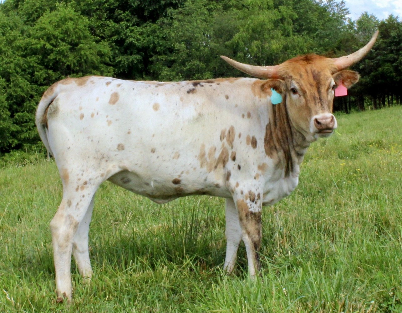 She gave us a gorgeous roan heifer 03/09/24, and a fancy bull calf sired by BL Jericho Chex on 4/21/2025, and is bred back the same way!