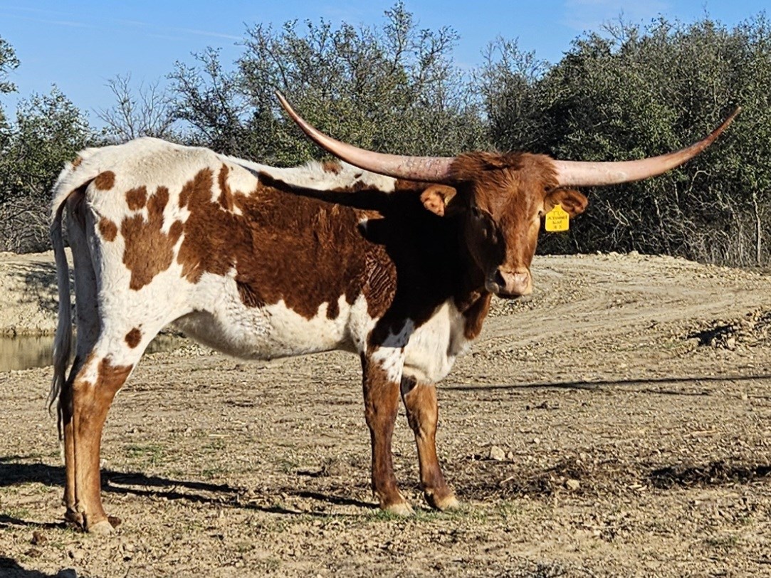 Agave is a pretty, red and white heifer with great conformation and size. Her pedigree includes 81.50" TTT, WS Jamakizm, 92.25" TTT, Texana Van Horne, 88.6250" TTT, Concealed Weapon, 79" TTT, JBM Teriffic Agave, 86" TTT, Starlight (twice), and 85.3750 TTT, RM Maximus Tari, among many other outstanding genetics. Agave is Millennium Futurity eligible.