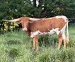 A beautiful red, white & brindle calf out of over 80 inch SDR Lucy and over 90 inch Hubbells Jeremiah 29:11. She is one of our favorites! There is no doubt she will be a very impressive cow when she matures. She is currently exposed to our herd sire, Triumph (Journeyman x TT Jaguar Josie) for a fall 2026 calf.