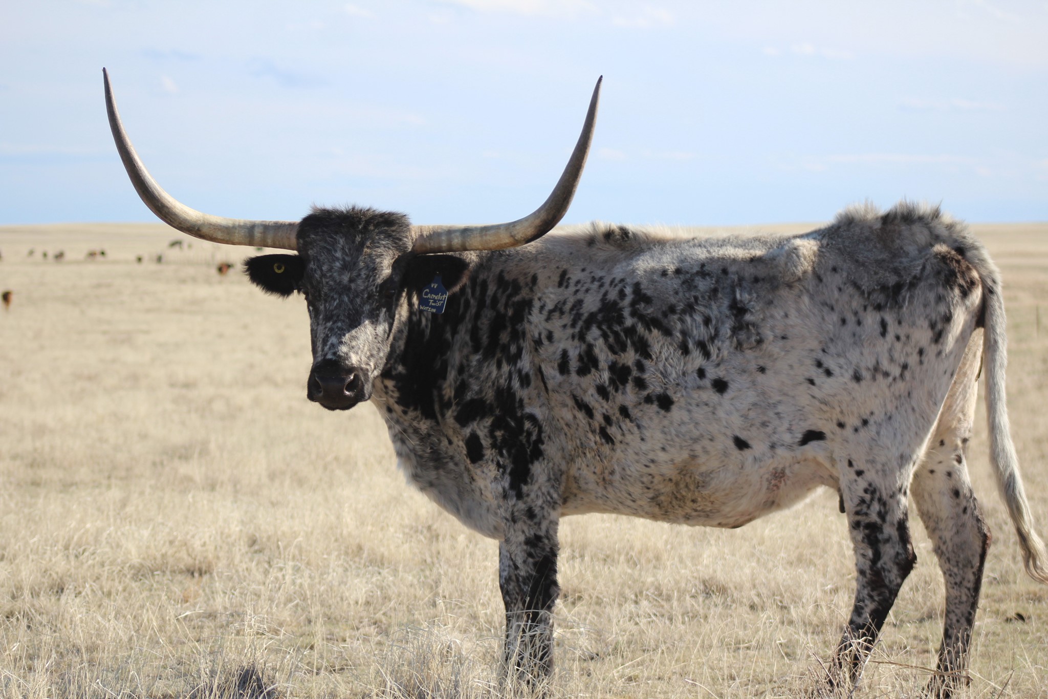 We bought "Twist" as a yearling at the Millennium Futurity. She's produced well for us recently giving us a very flat horn Crisp Respect heifer and a sweet little Sittin Bull heifer we're keeping as a replacement. She is safe in calf to SDR Duke (Awesome Viagra x Hatch's Candy Cane). Duke is a full brother to $80,000 Awesome Teardrop and $170,000 SDR Candy Cane. So far she's produced great bodied flat horn heifers. Millennium Futurity.