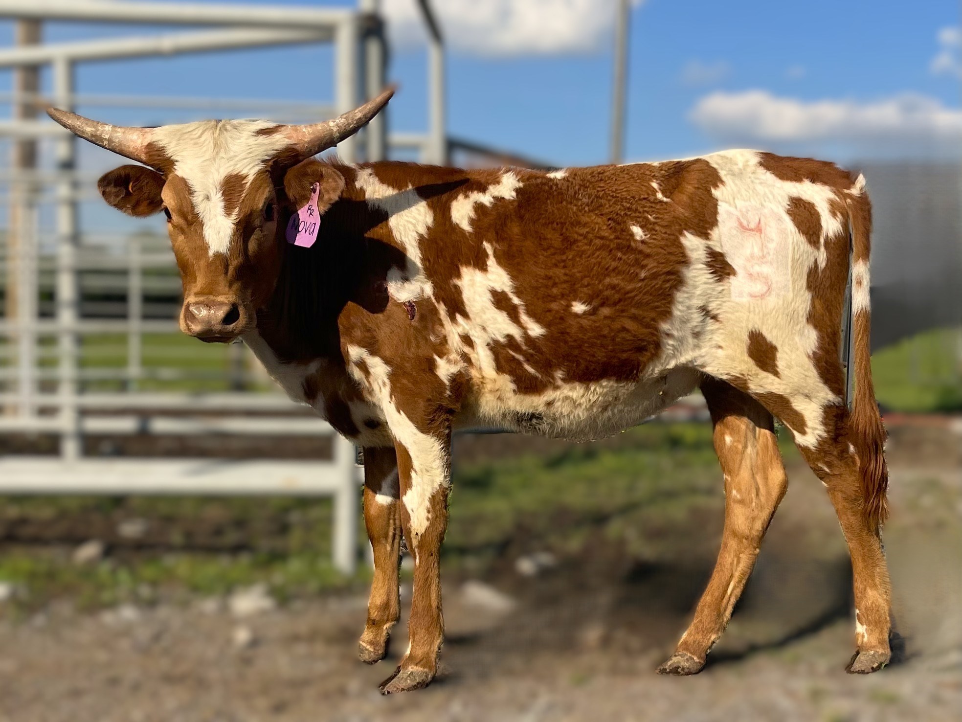 Beautiful and FLASHY, with horns that are going back and hooking, this young lady has the pedigree to match! With names like Drag Iron, Cowboy Chex, several Horseshow J cows, PCC Rim Rock, VJ Tommie (Unlimited), Lambs Power Play, Gunman and Overwhelmer and many more! Her sire and dam are both built like a tank, deep bodied and throw off a ton of horn; her dam is over 81". This girl shows promise, as her TTT exceeds all of our 2024 calves at a younger age, with the most rapid horn growth beginning in year 2. Once mature, her offspring will be fun to watch as she truly has it all and will undoubtedly be a foundation cow in your program!
