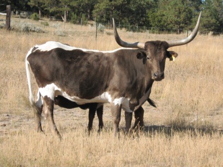Big,long Shadow daughter.Mother of our big grullo and white spotted herd sire Timber Smoke that we used for several years.