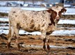 One of the most spectacular cows in the herd! Big brindle roan with huge rolling horn that is brushing 80". Has been a top producer for me and she leaves some beautiful heifers behind. Confirmed bred to Pacific Cowboy for 2020 and has a big Pacific Cowboy bull calf at side. Johnes neg.