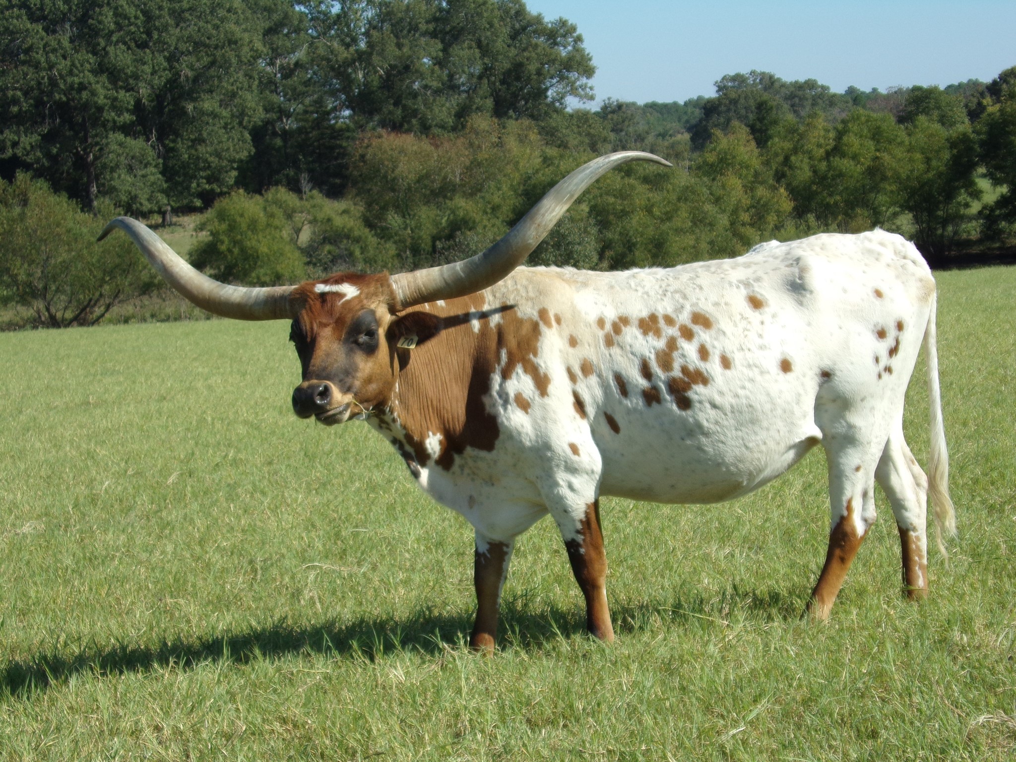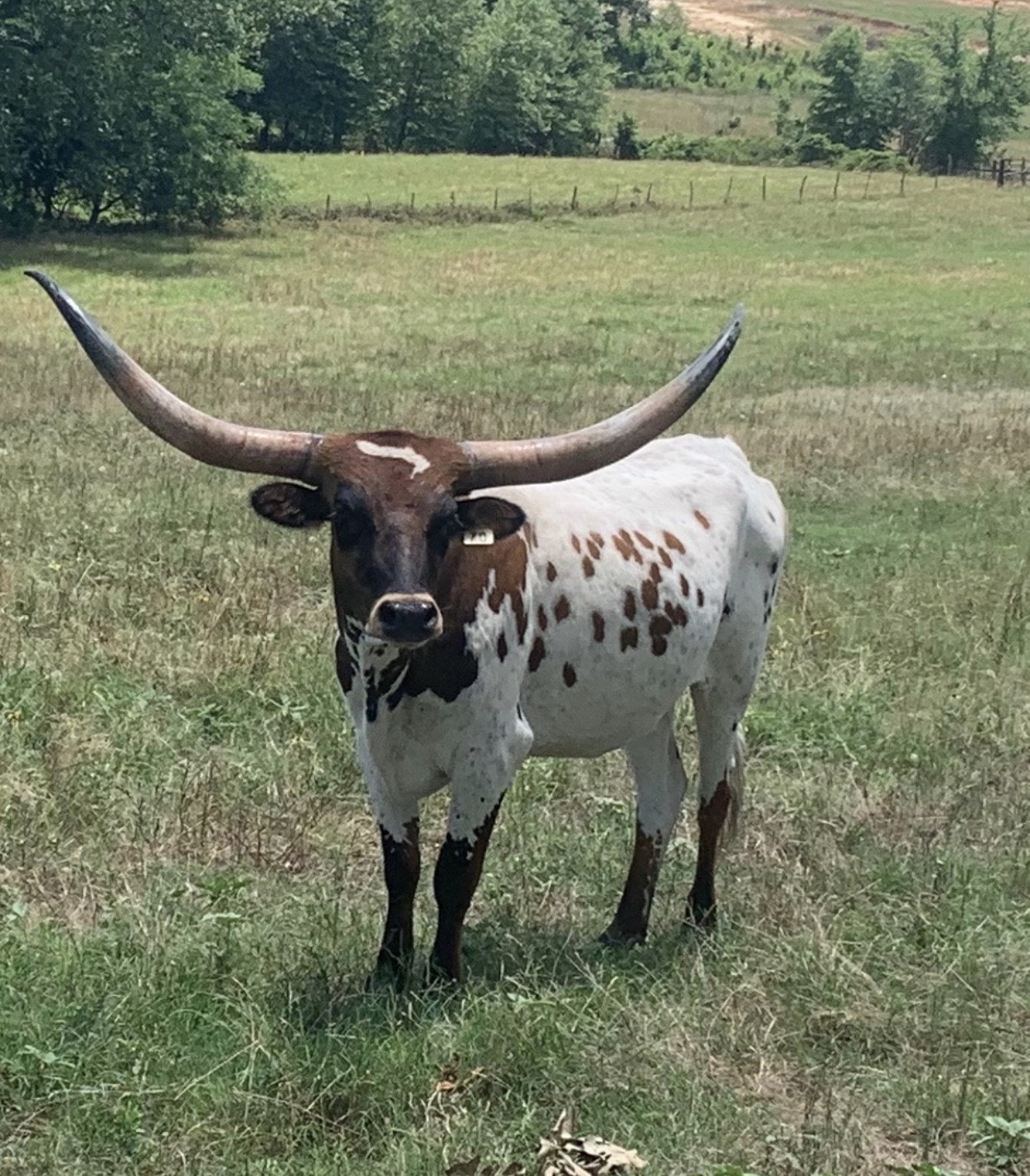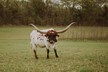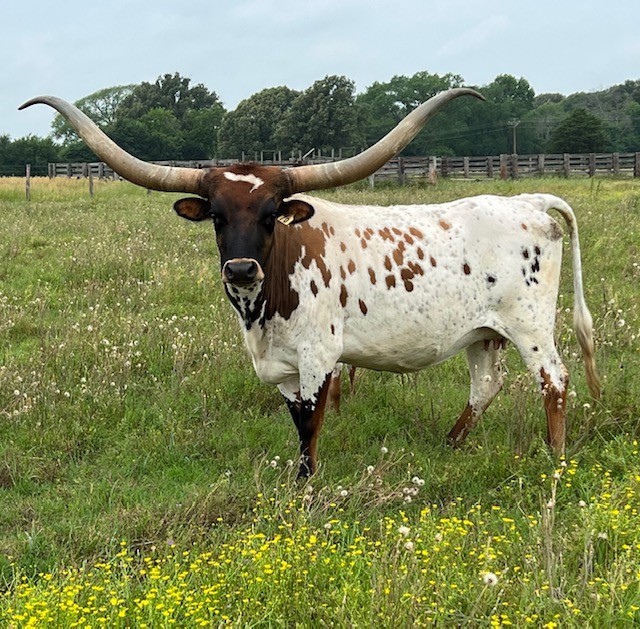 Tinker Doll comes from the Loomis ranch and is a very well built cow. She has a unique horn set that really rolls backwards. She is a very calm easy keeper and personally my favorite. She is out of the longest horn bull Cowboy Tuff Chex (106"+)